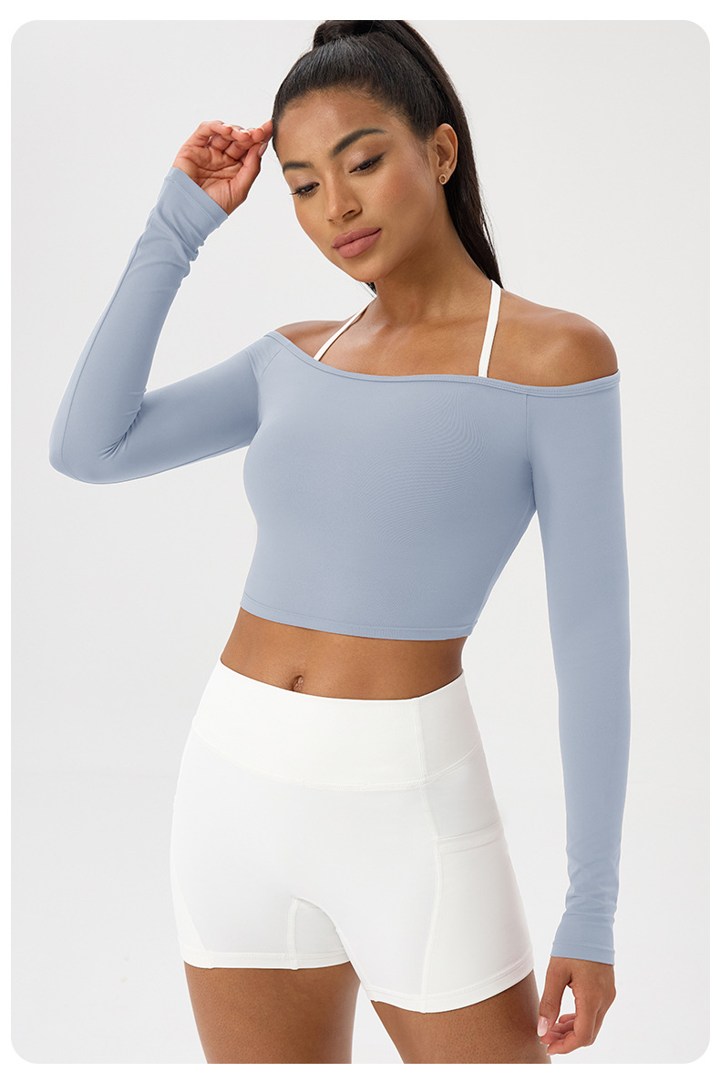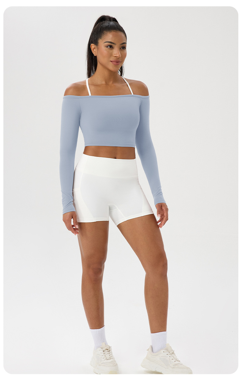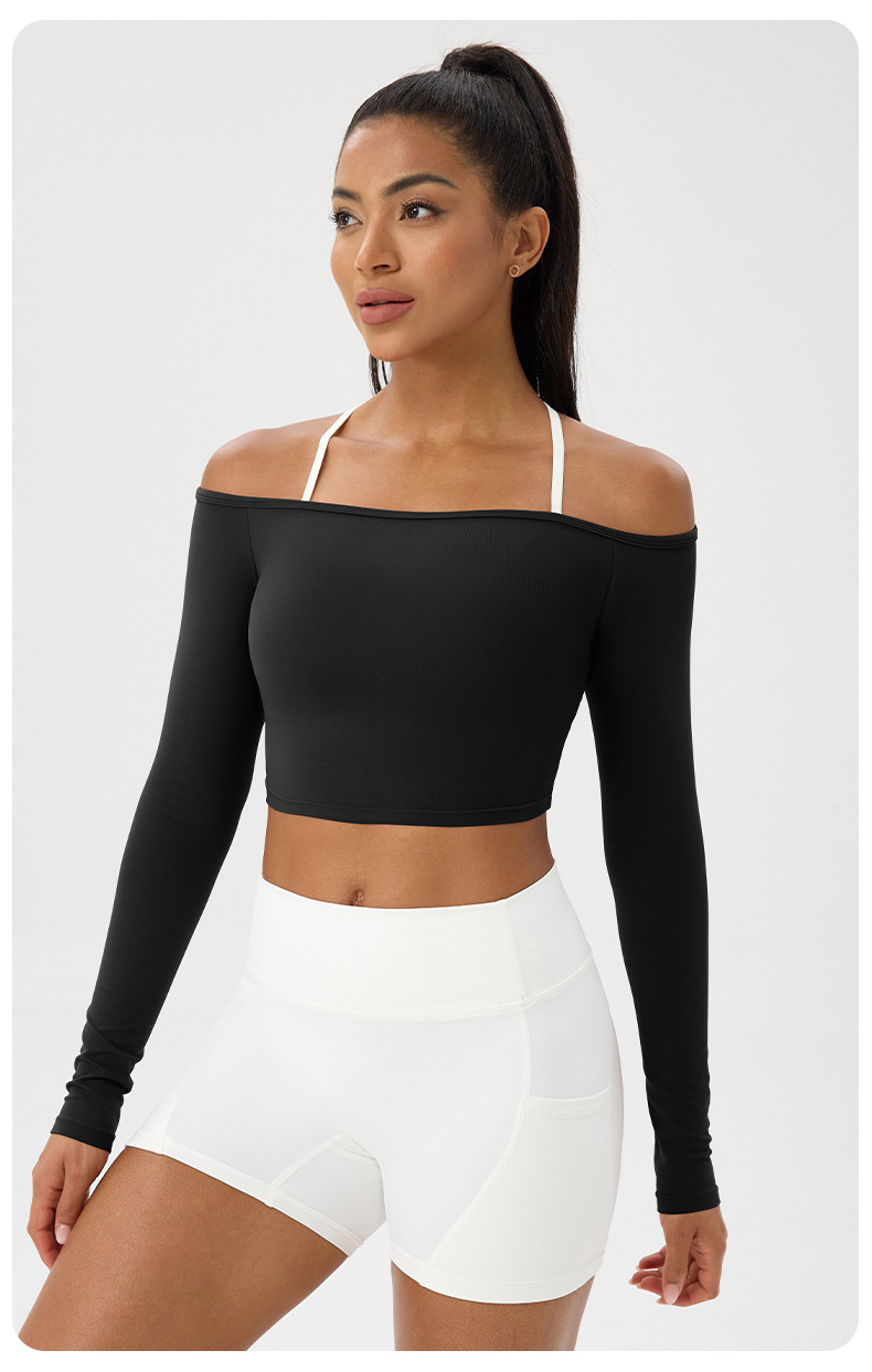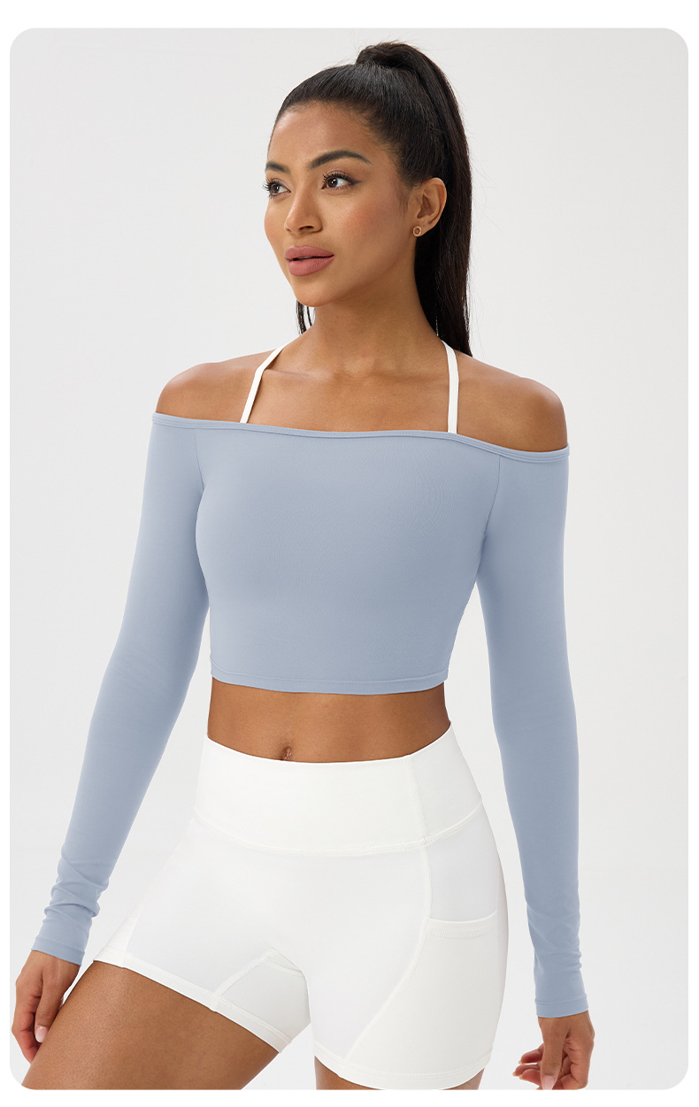 A modern, fitted one-shoulder blouse combining fashionable design with comfort. The asymmetrical one-shoulder neckline adds a feminine and elegant touch, while the fitted cut flatters the figure. Crafted from flexible, soft nylon, it is breathable and comfortable to wear. Perfect for fitness, yoga, and everyday, sporty-casual styles.