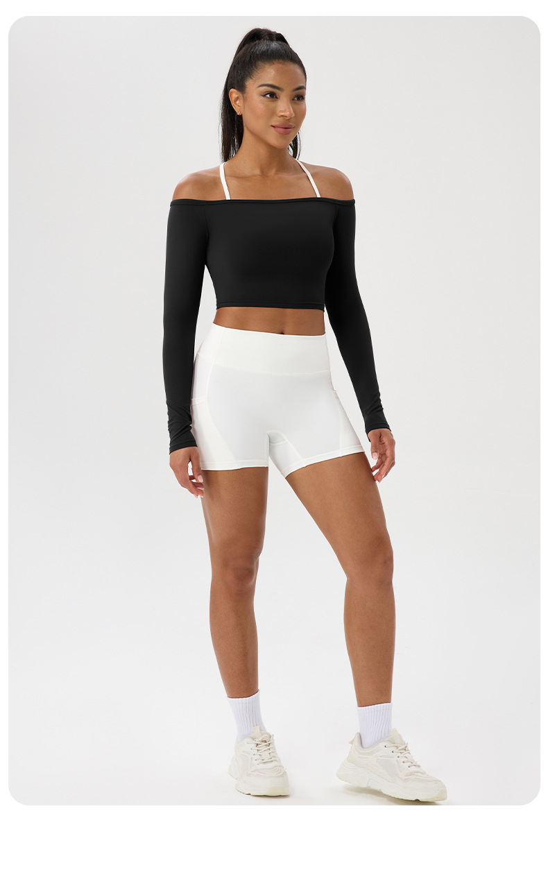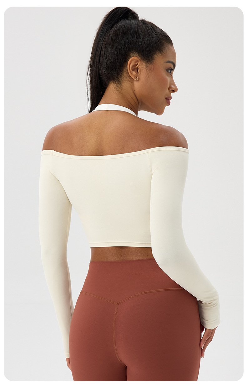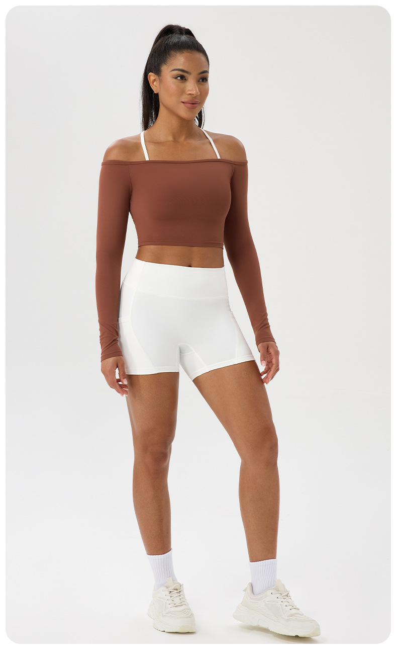 A modern, fitted one-shoulder blouse combining fashionable design with comfort. The asymmetrical one-shoulder neckline adds a feminine and elegant touch, while the fitted cut flatters the figure. Crafted from flexible, soft nylon, it is breathable and comfortable to wear. Perfect for fitness, yoga, and everyday, sporty-casual styles.