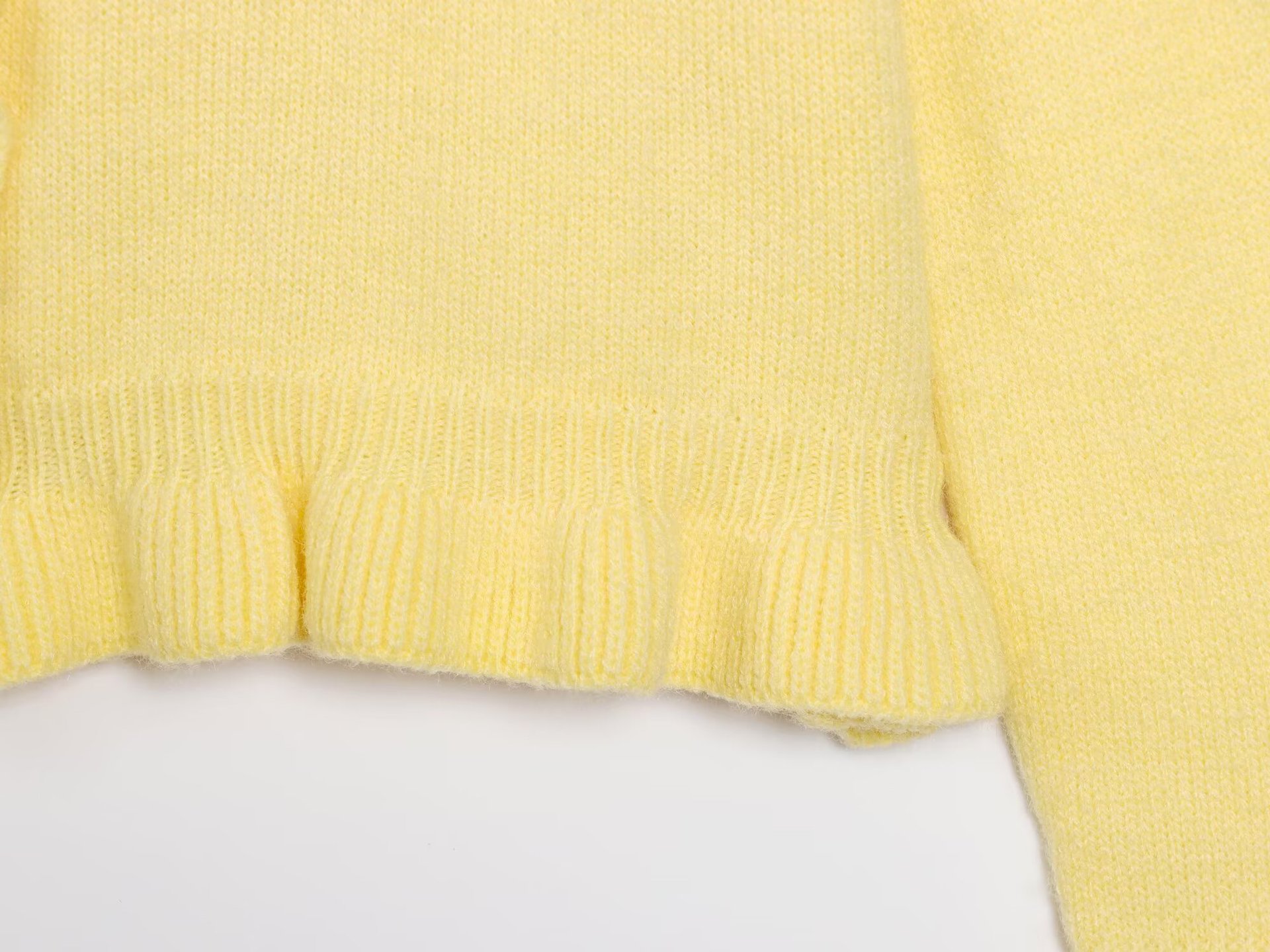 A stylish European-style women's sweater crafted from polyester jersey. The regular fit ensures comfort, while long sleeves and a crew neckline add a classic, casual look. Splicing and button details add a subtle, fashionable touch. Color: yellow.