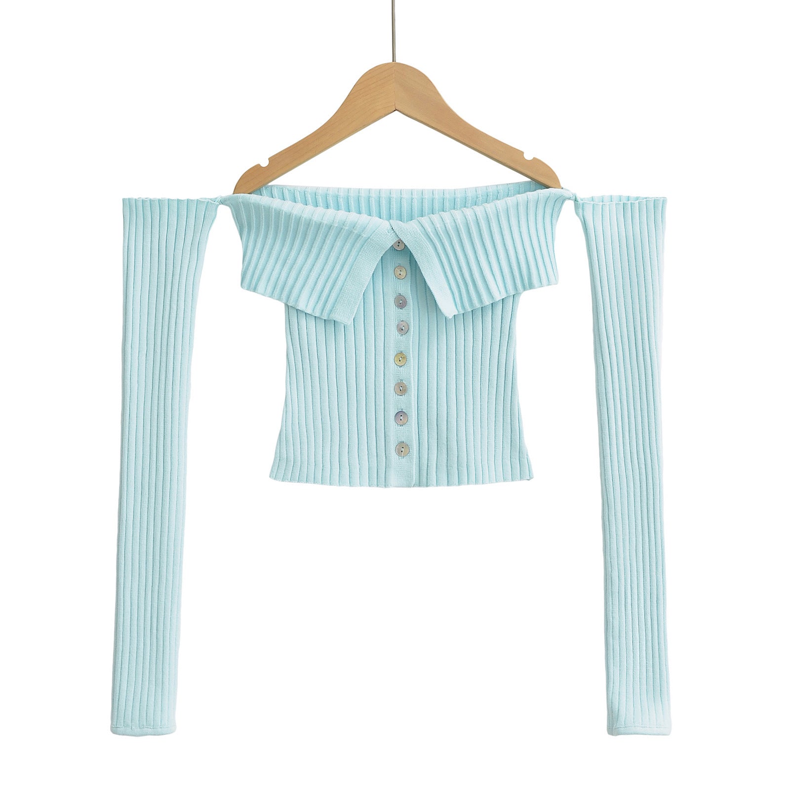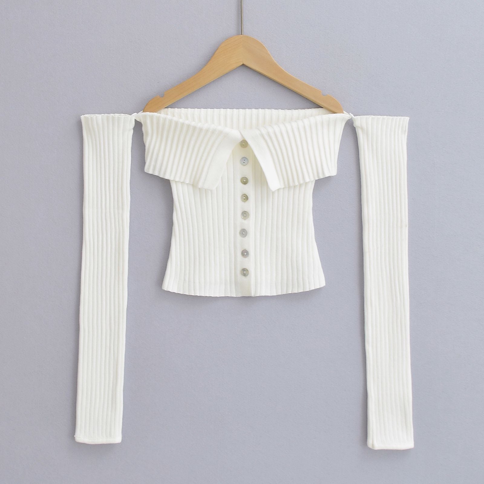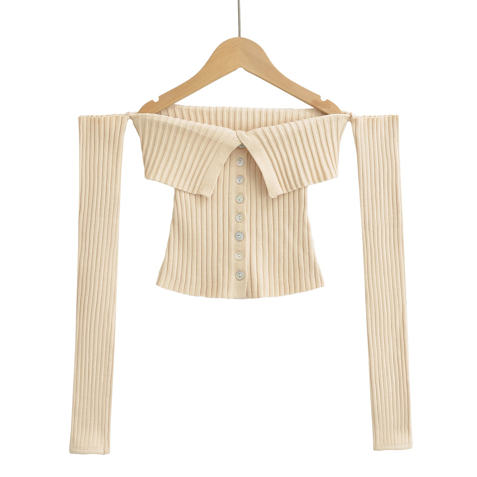 - Długi rękaw i asymetryczny dekolt – modny, kobiecy akcent
