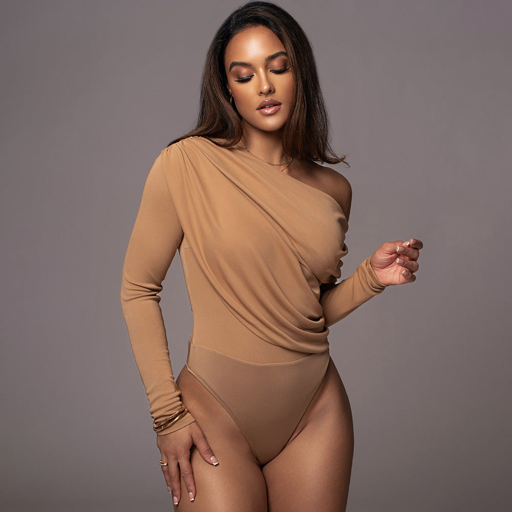 Elegancki jumpsuit w stylu European & American, łączący modny design z wygodą. Wykonany z letkiego, elastycznego poliestru, z długimi rękawami i regularnym kołnierzem. Detale plisowania i splicing nadają subtelnego, stylowego charakteru. Dopasowany fason slim fit podkreśla sylwetkę, a wysoka talia dodatkowo modeluje figurę. Dostępny w klasycznych kolorach: biały, czarny i khaki.