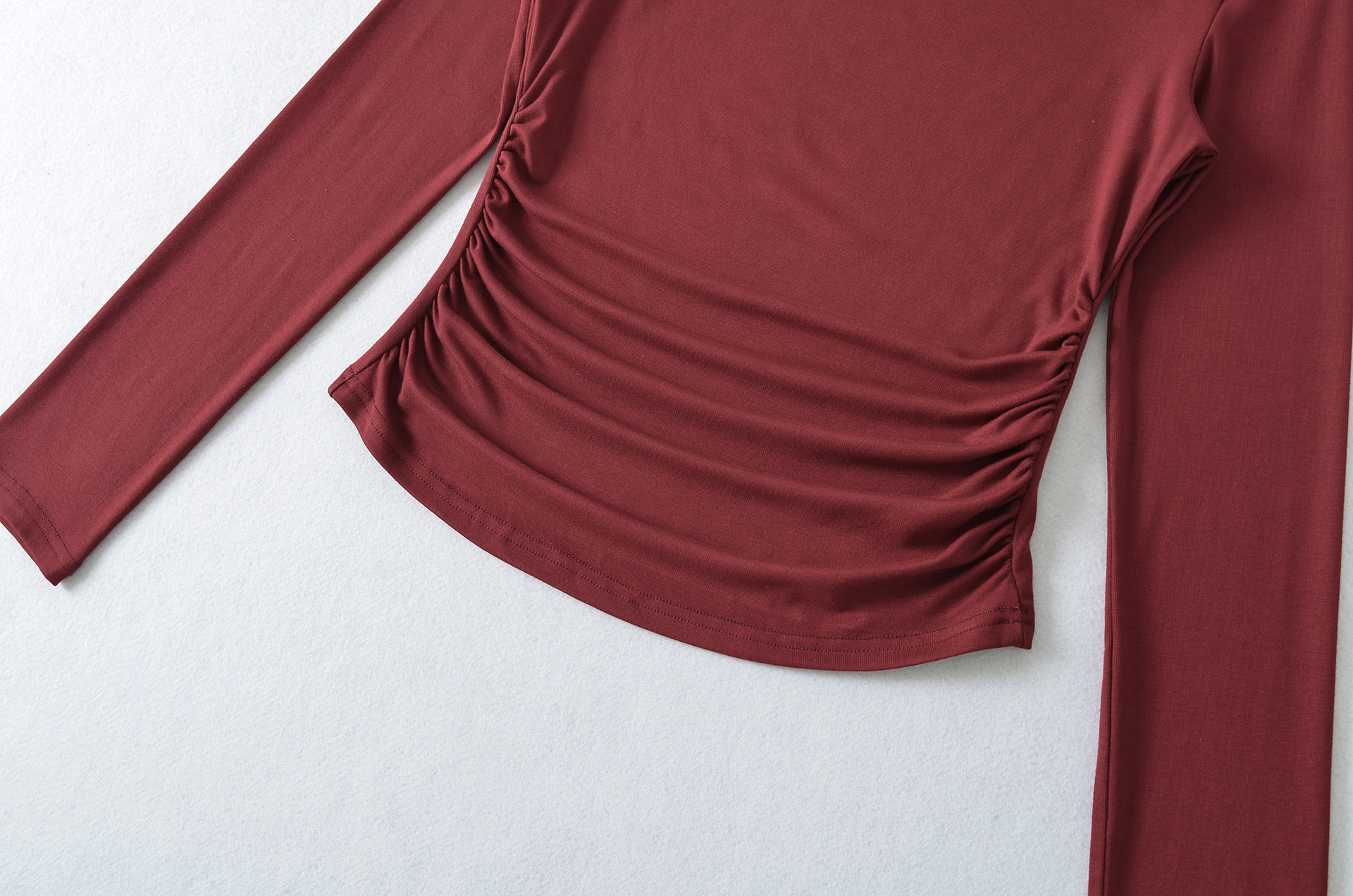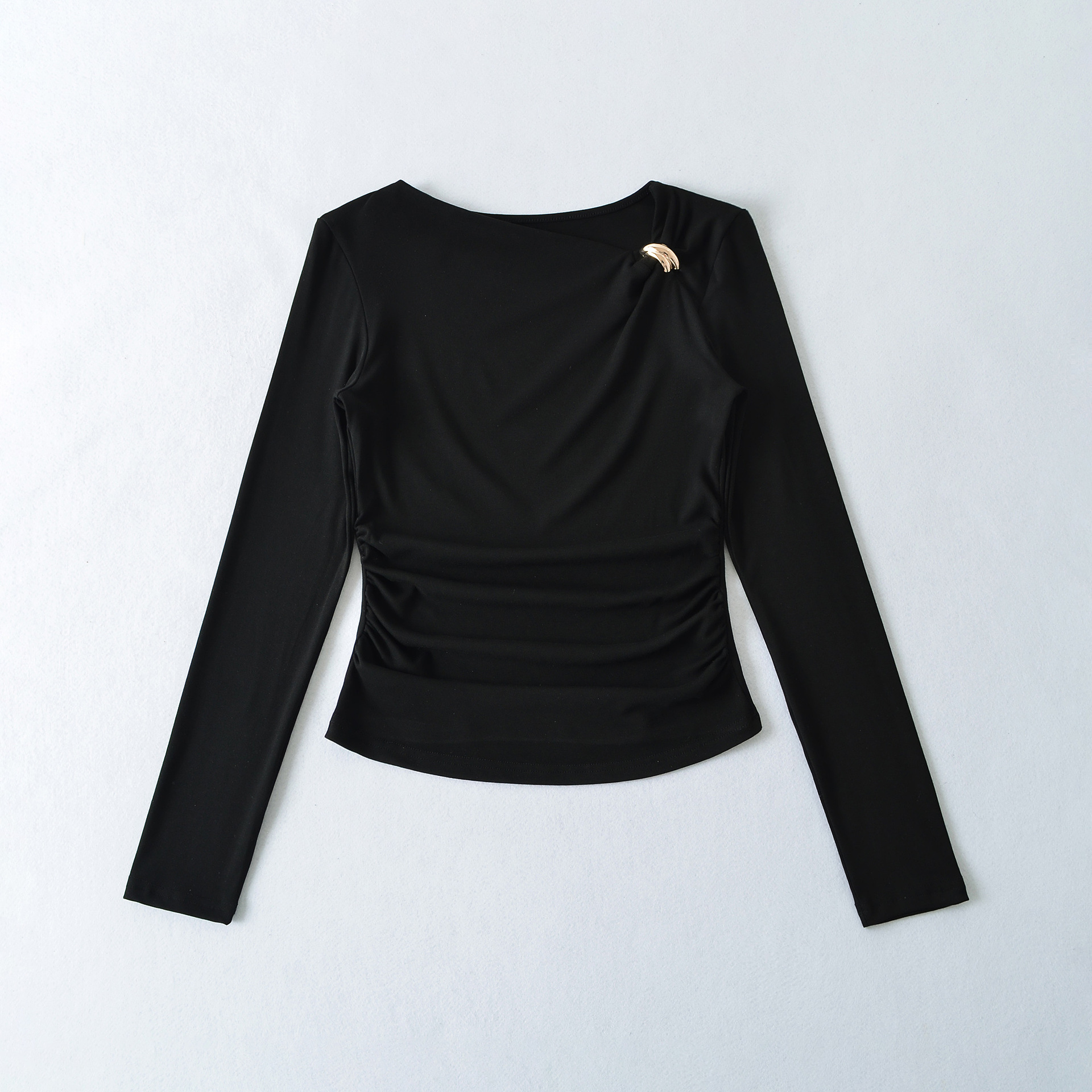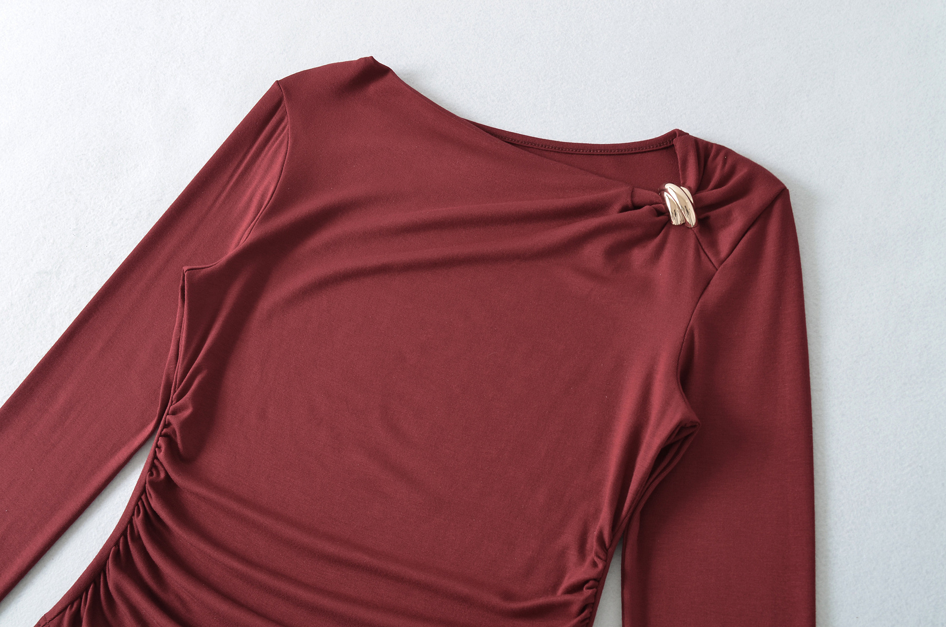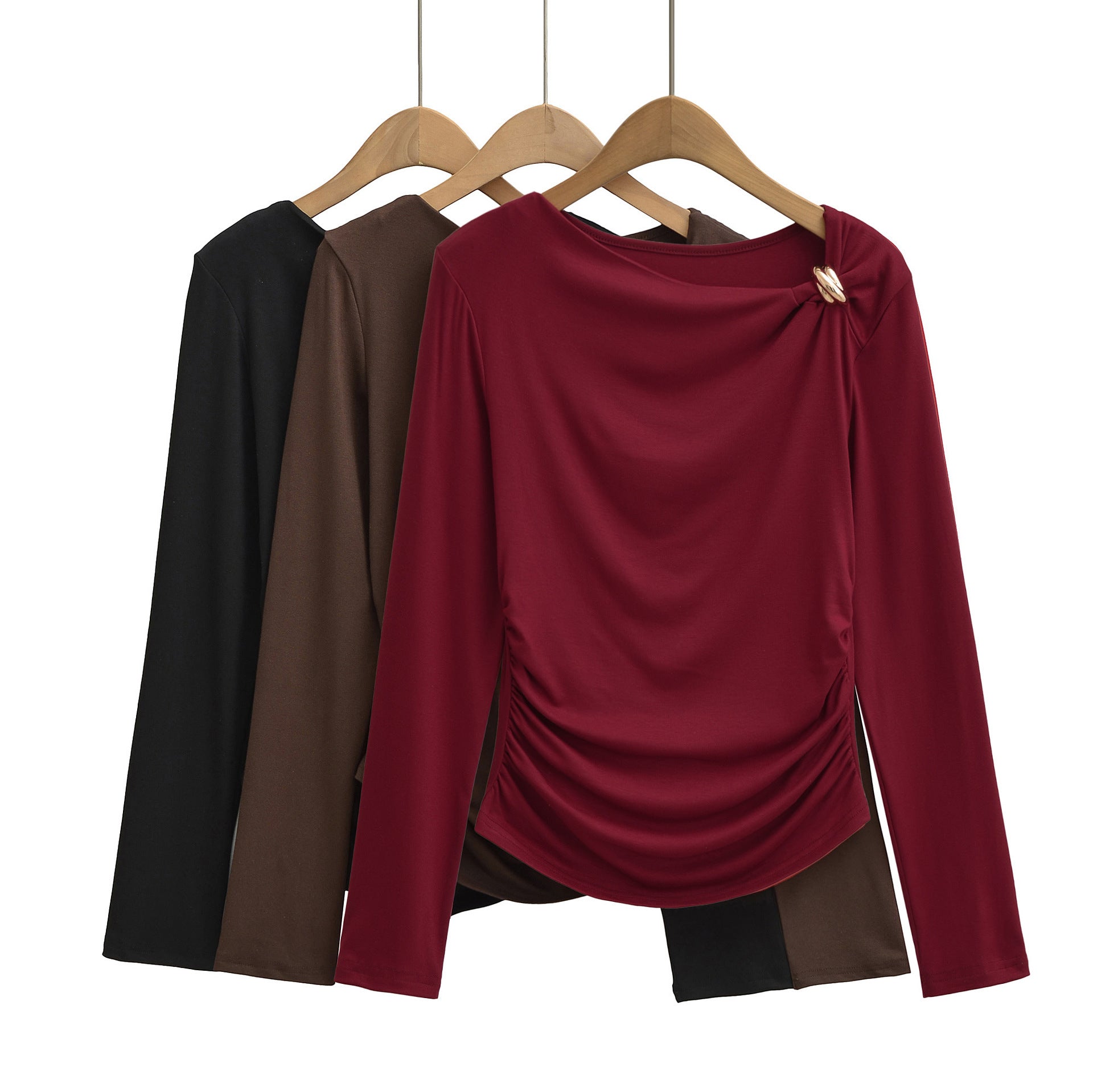 Elegancki top w stylu Elegant Commute, który łączy klasykę z komfortem. Prosty, jednolity wzór w klasycznych kolorach (czarny, bordowy, brązowy) sprawdzi się zarówno w codziennych stylizacjach, do pracy, jak i na spotkania towarzyskie. Kwadratowy dekolt podkreśla szyję i ramiona, a dopasowany fason slim fit i długi rękaw nadają sylwetce elegancki wygląd. Wykonany z elastycznej bawełny z dodatkiem spandexu mięki i komfortowy w noszeniu.