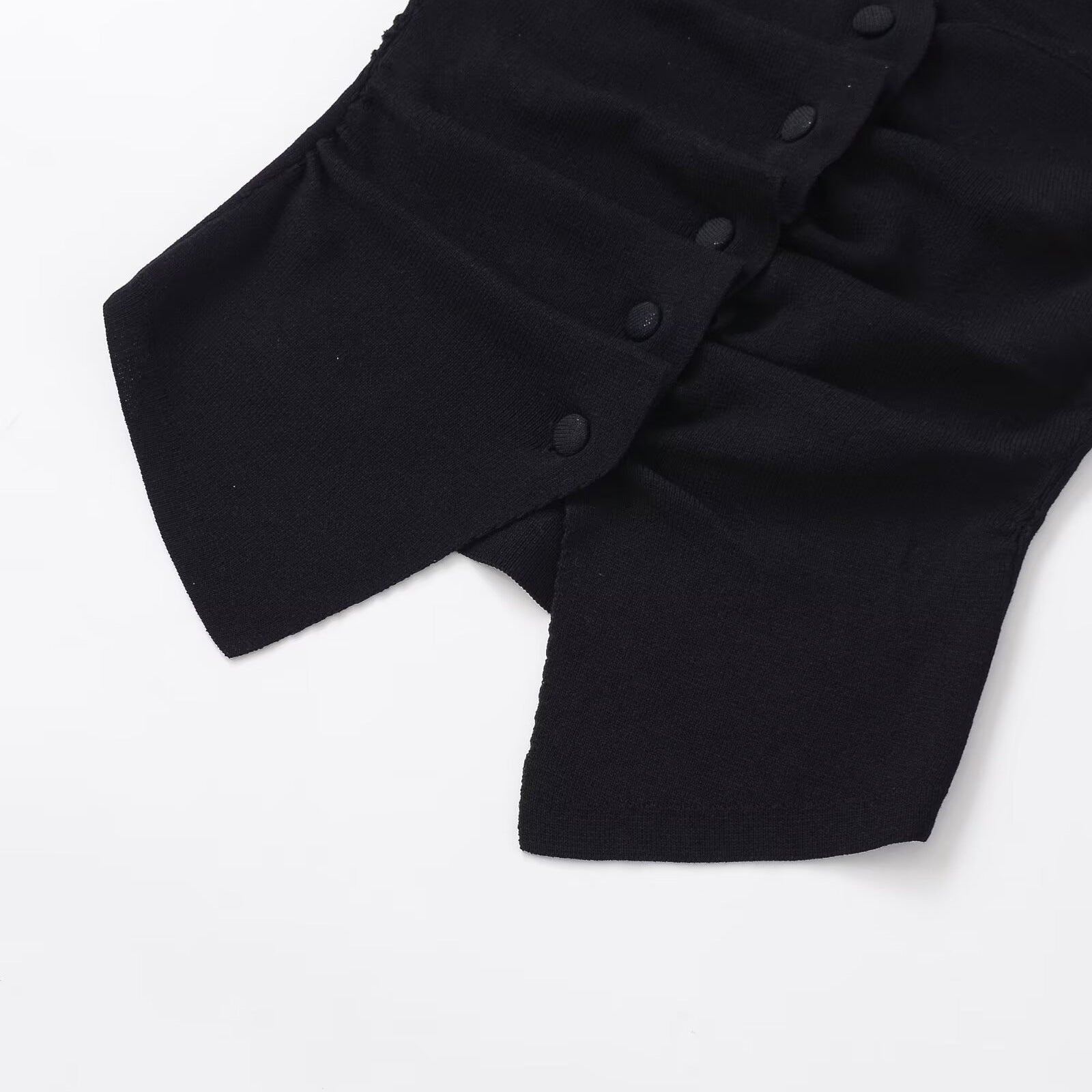 Dekolt typu halter neck pięknie eksponuje ramiona i szyję, nadając stylizacji kobiecy i lekko zmysłowy charakter. Dopasowany krój podkreśla figurę, a efekt 3D dodaje całości nowoczesnego, modowego akcentu.