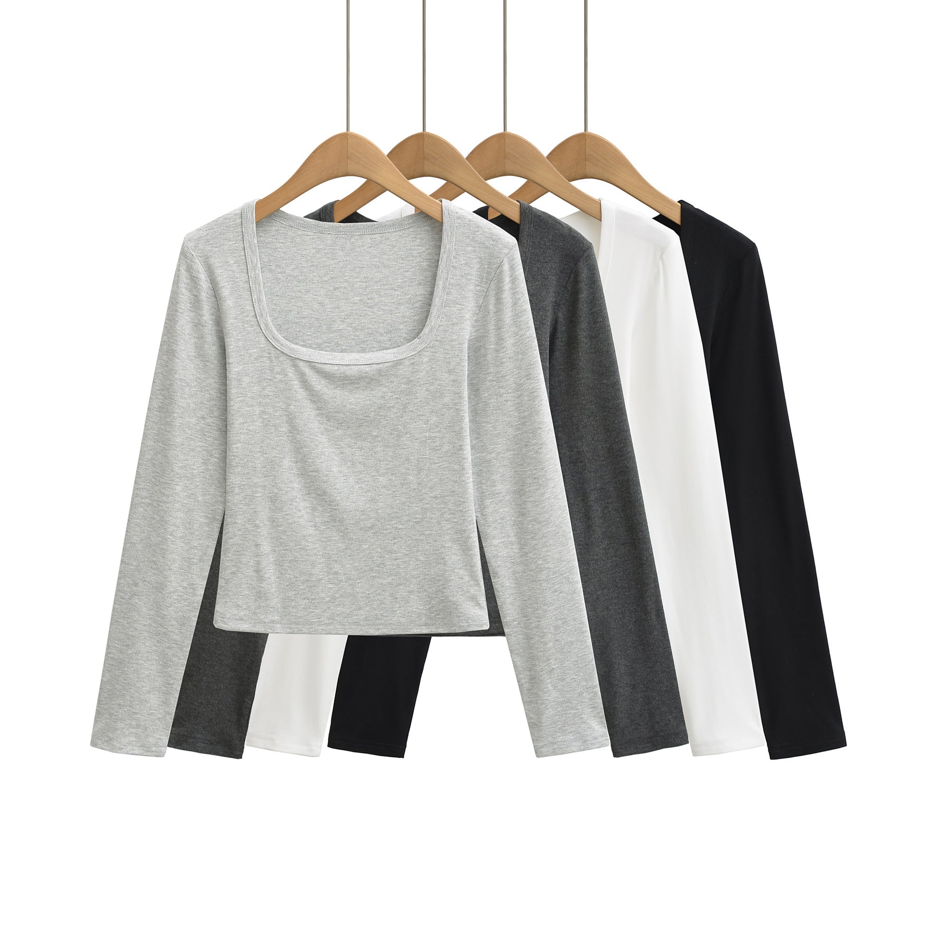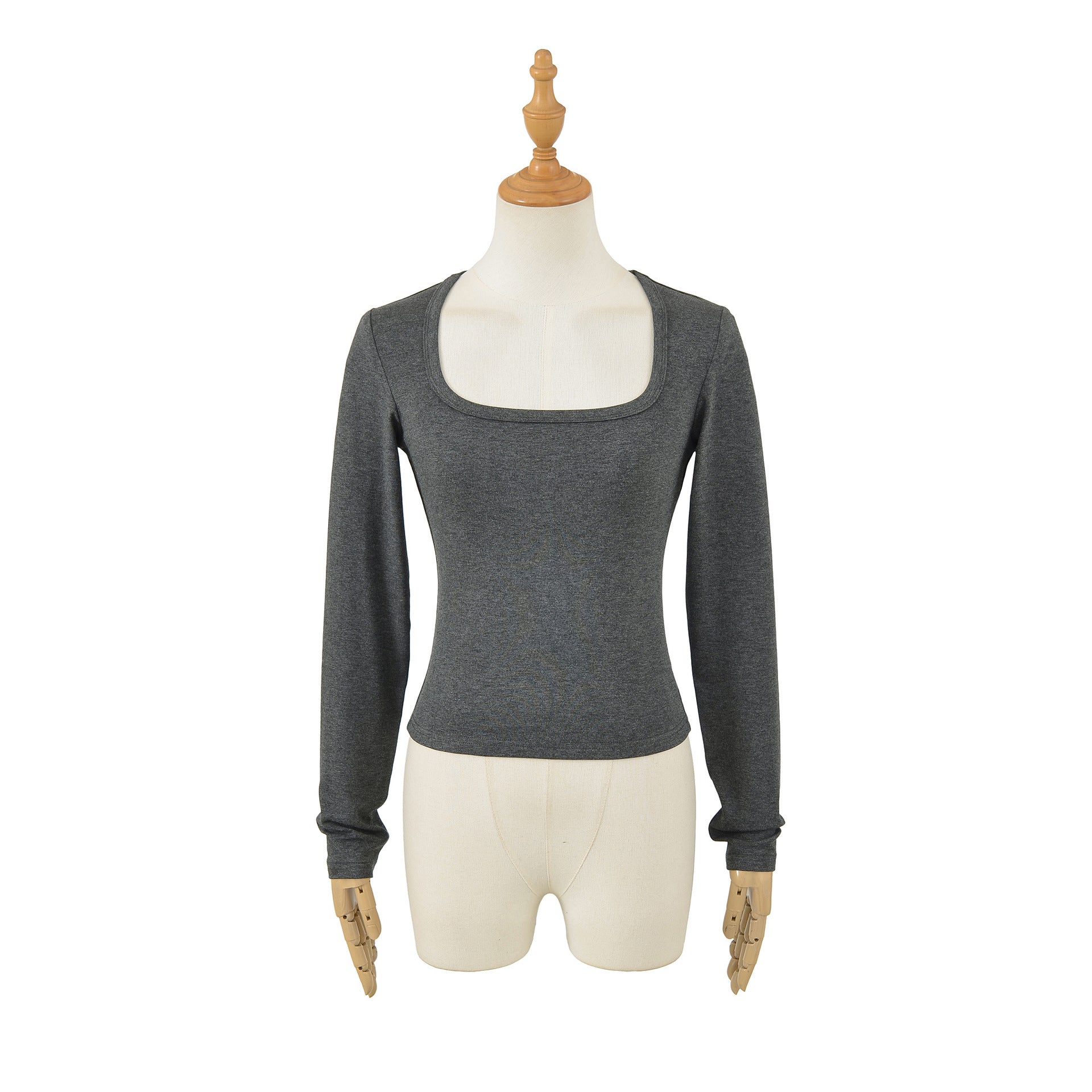 - Długi rękaw i dekolt U-neck – klasyka i wygoda